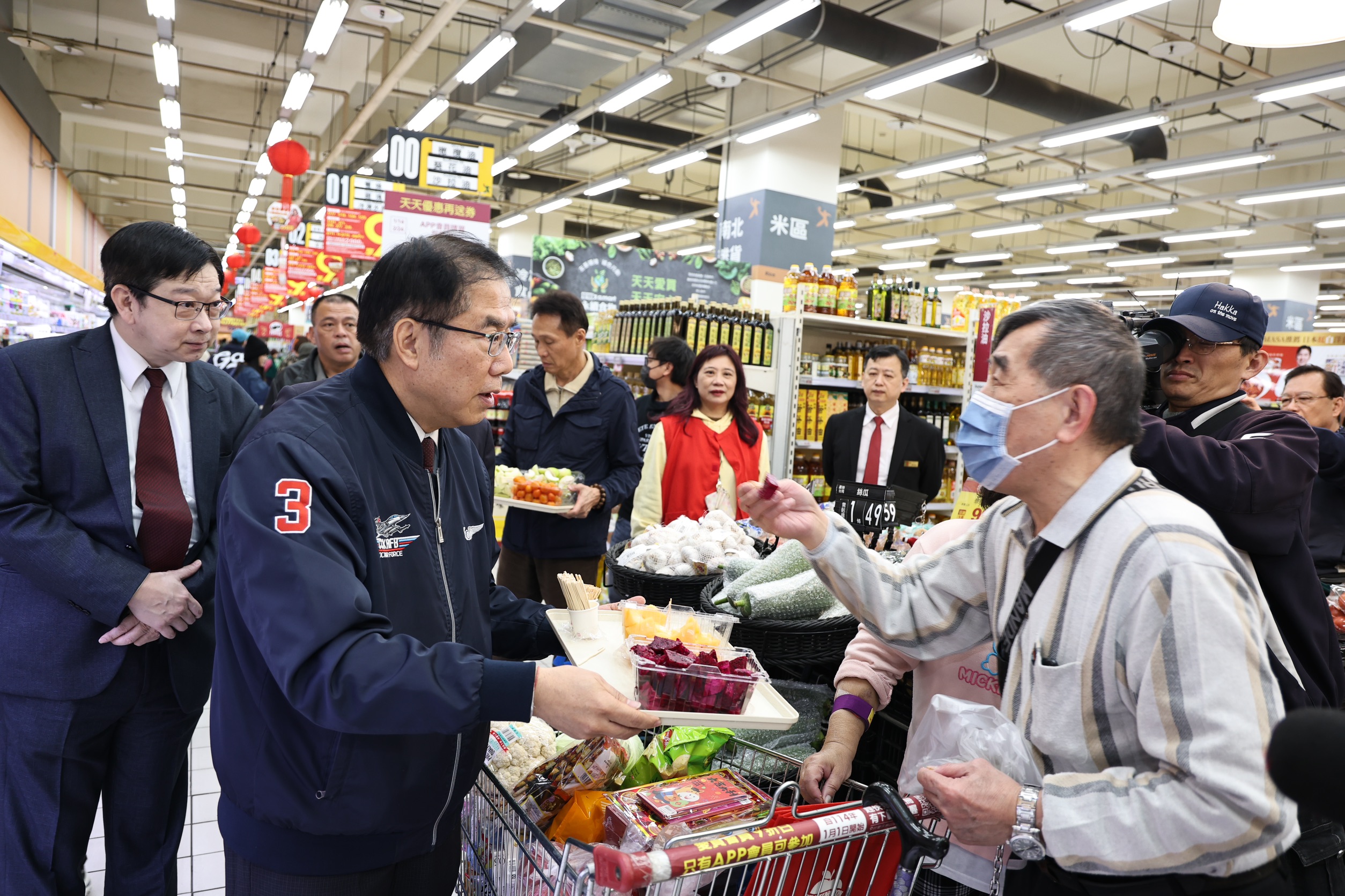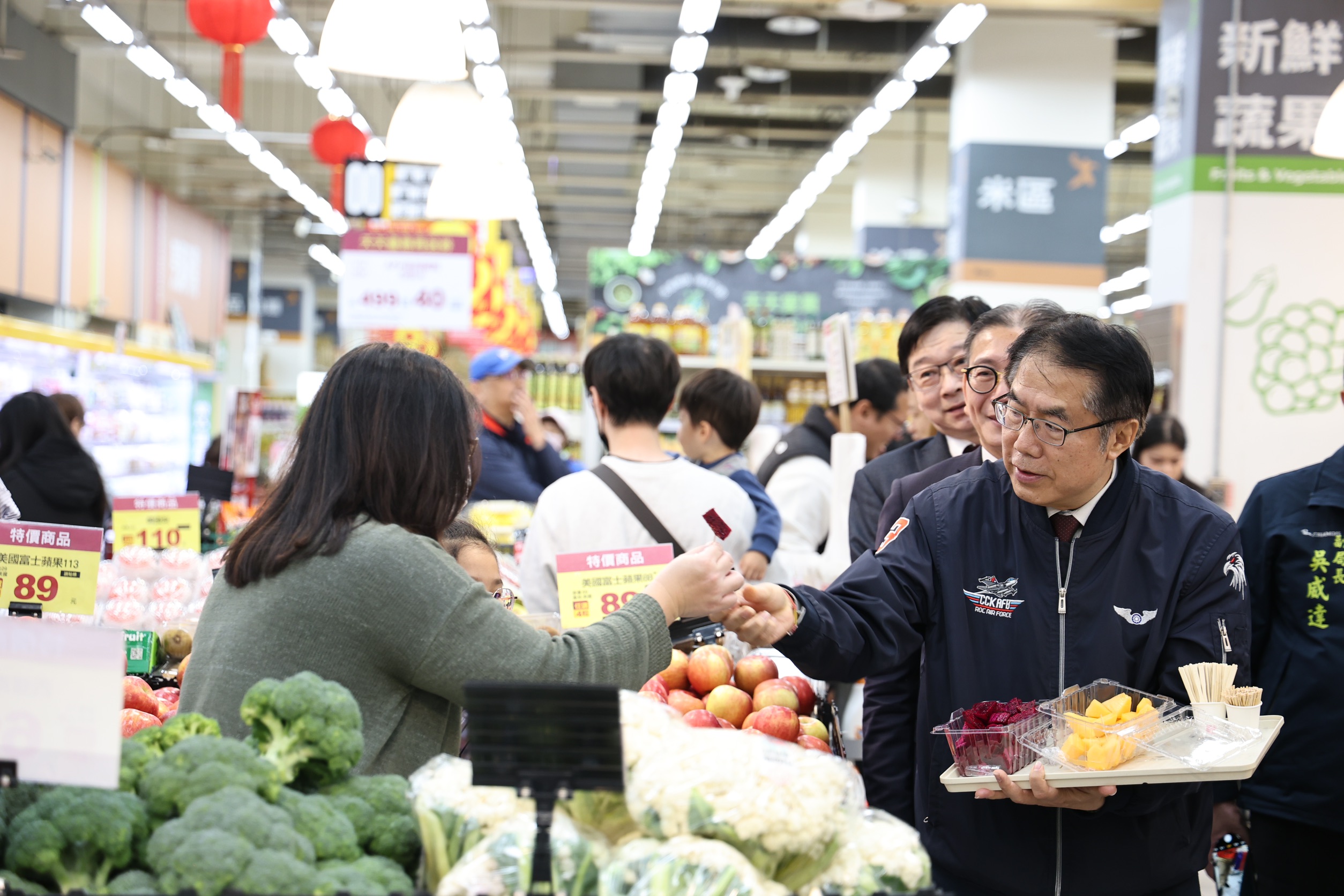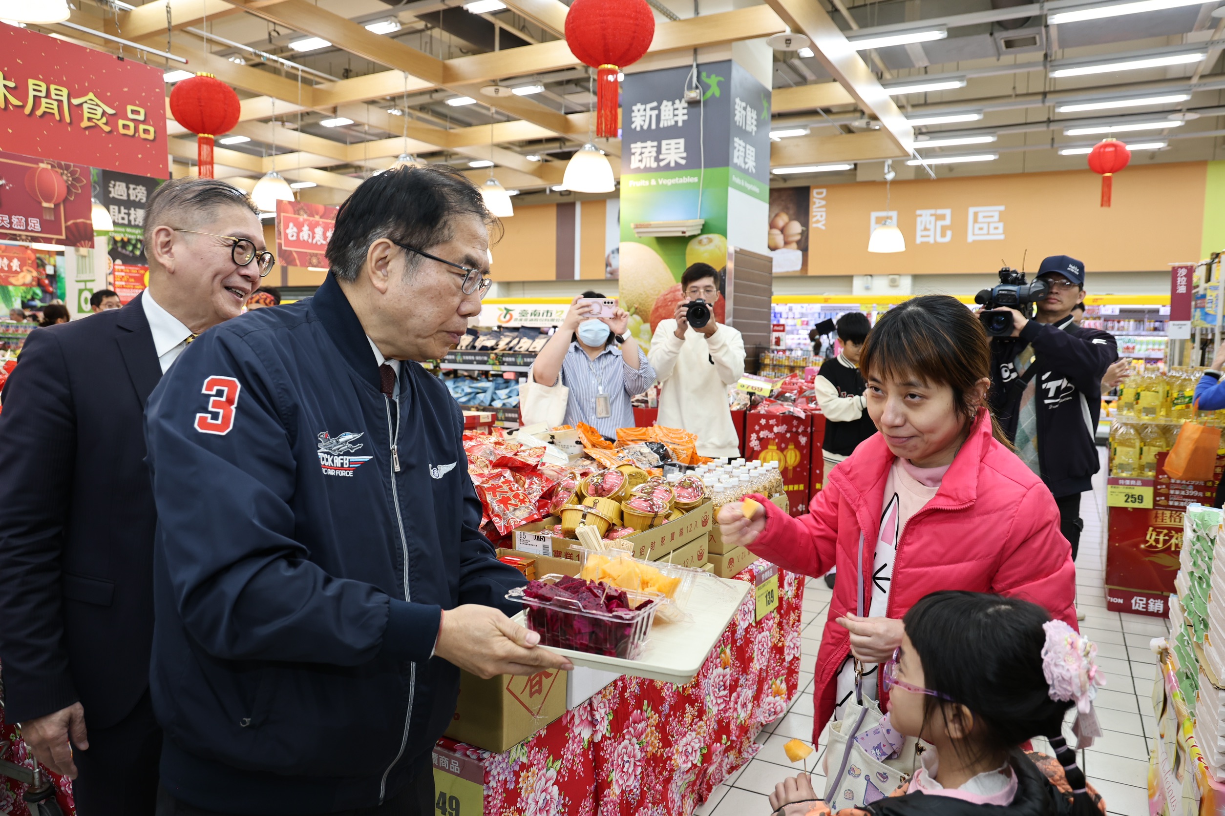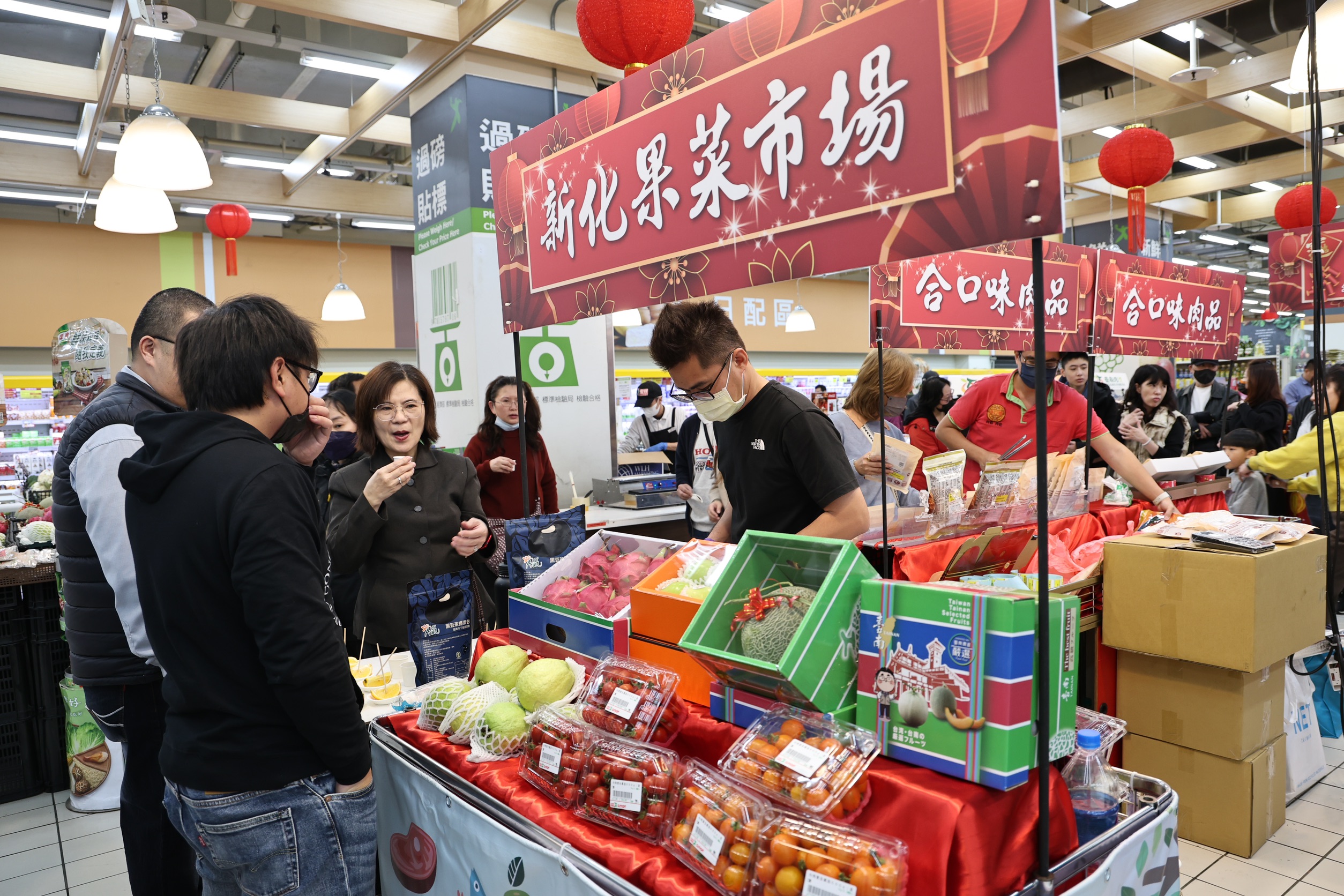 今日板橋愛買記者會結束後,市長夫人劉育菁也代表市長前往桃園愛買參加試吃推廣活動,包括農業局副局長吳威達與臺南市農產運銷股份有限公司總經理楊弘義、遠東百貨副總經理陳佑任、遠百愛買量販營運長姚偉昱等均出席支持。