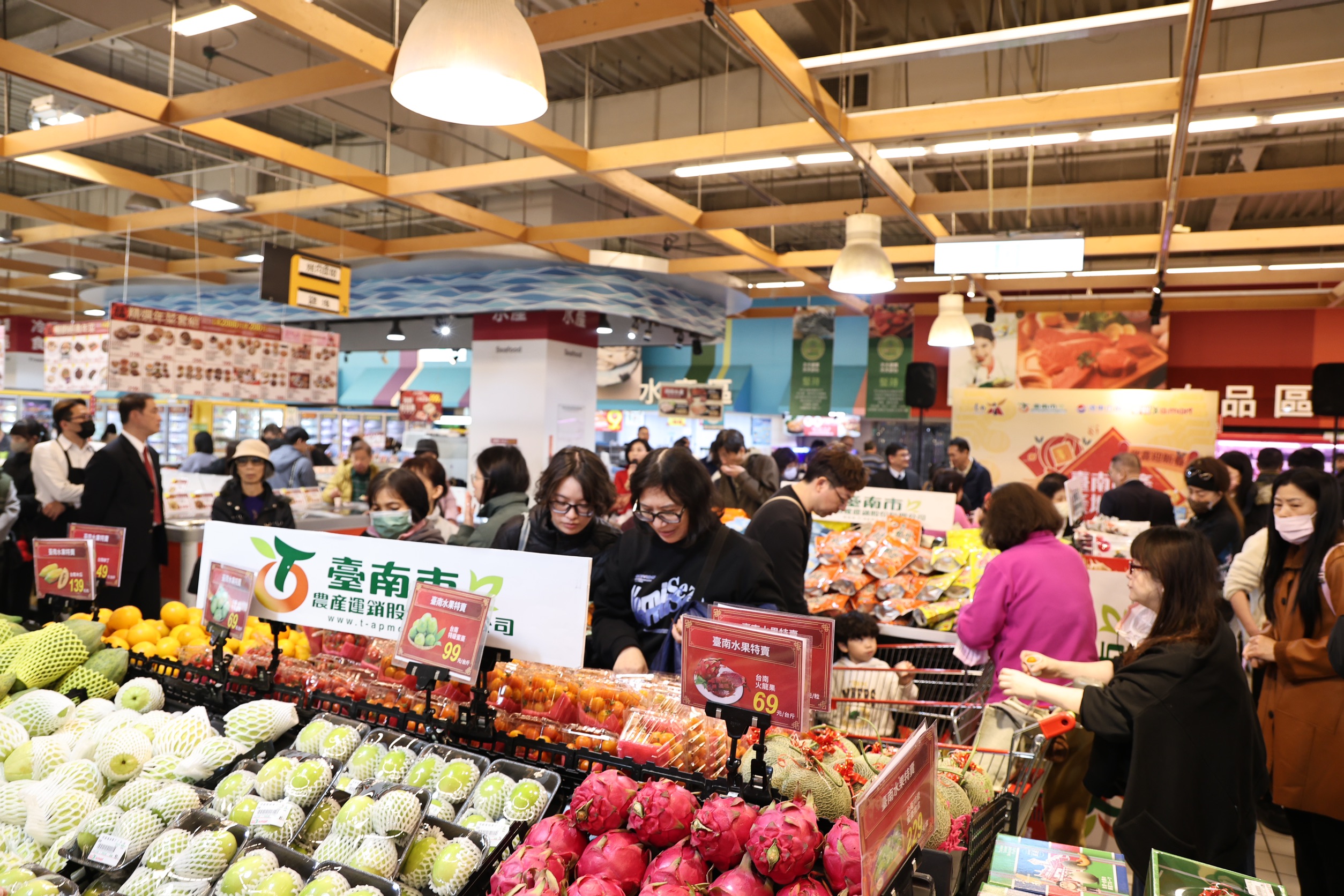 市長黃偉哲表示,這次攜手遠百愛買通路推廣台南農特產品,讓北部消費者能在最便利的量販通路,一站式選購來自台南的優質農漁畜產品。現場除展售各式新鮮水果外,也包含虱目魚、台灣鯛等水產,可現場處理或代客料理,滿足不同消費需求;另有肉乾、肉片、烏魚子、魚丸等加工品,以及黑豆茶、黃金蕎麥麵、桂圓與地瓜酥等應景年貨,品項多元齊全。黃偉哲強調,台南不僅是科技重鎮,更是農業大市,擁有品質穩定、健康營養的農特產品,透過與大型通路深化合作,將一波波把最好的產品推薦給全台消費者,歡迎民眾先在通路品嚐選購,也誠摯邀請大家走訪台南,親自感受在地農業的魅力。