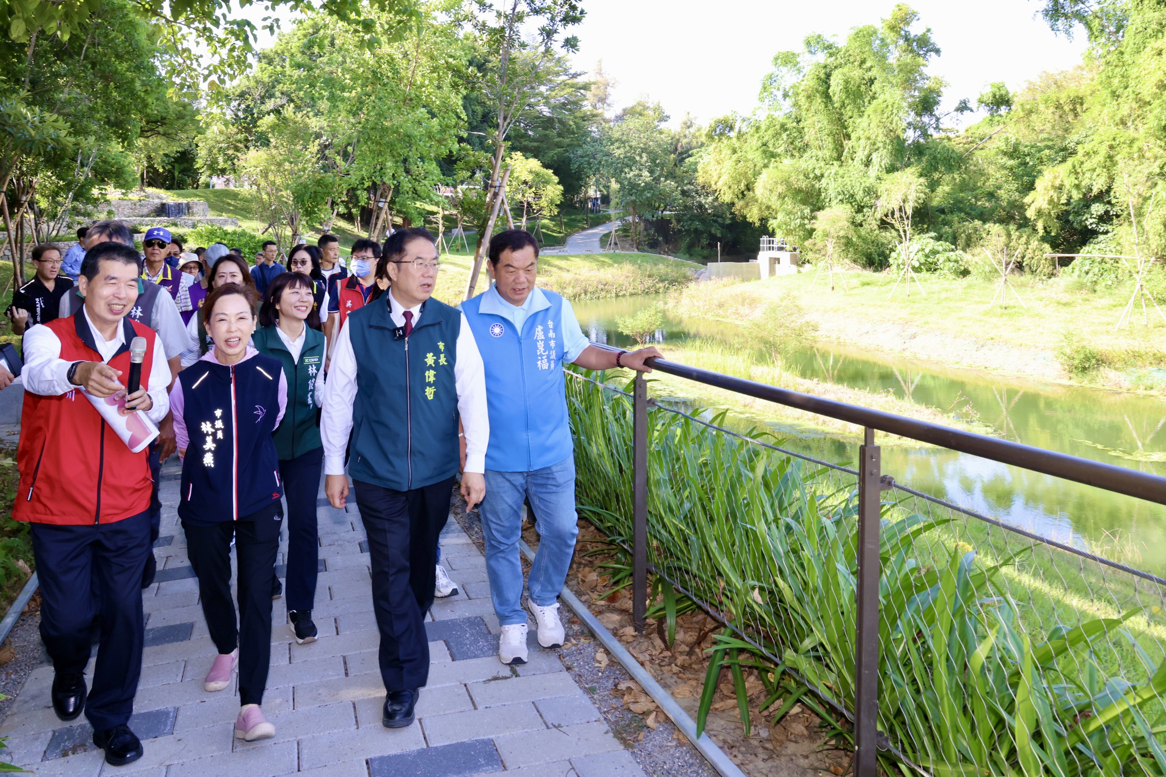 黃偉哲強調,竹溪整治計畫是臺南將「治水」提升至「親水」與「淨水」的典範,卓越的成果更讓世界看見臺南,頻頻獲獎,包括2024建築園冶獎(公園綠地景觀類及淨零綠建築特別獎項)、第24屆行政院公共工程金質獎及2025國家卓越建設獎(最佳環境文化類—金質獎、最佳施工品質類—金質獎),「竹溪水岸園區」多次獲得國內最高工程榮譽,表彰其在生態復育與景觀美學上的雙重成就。
