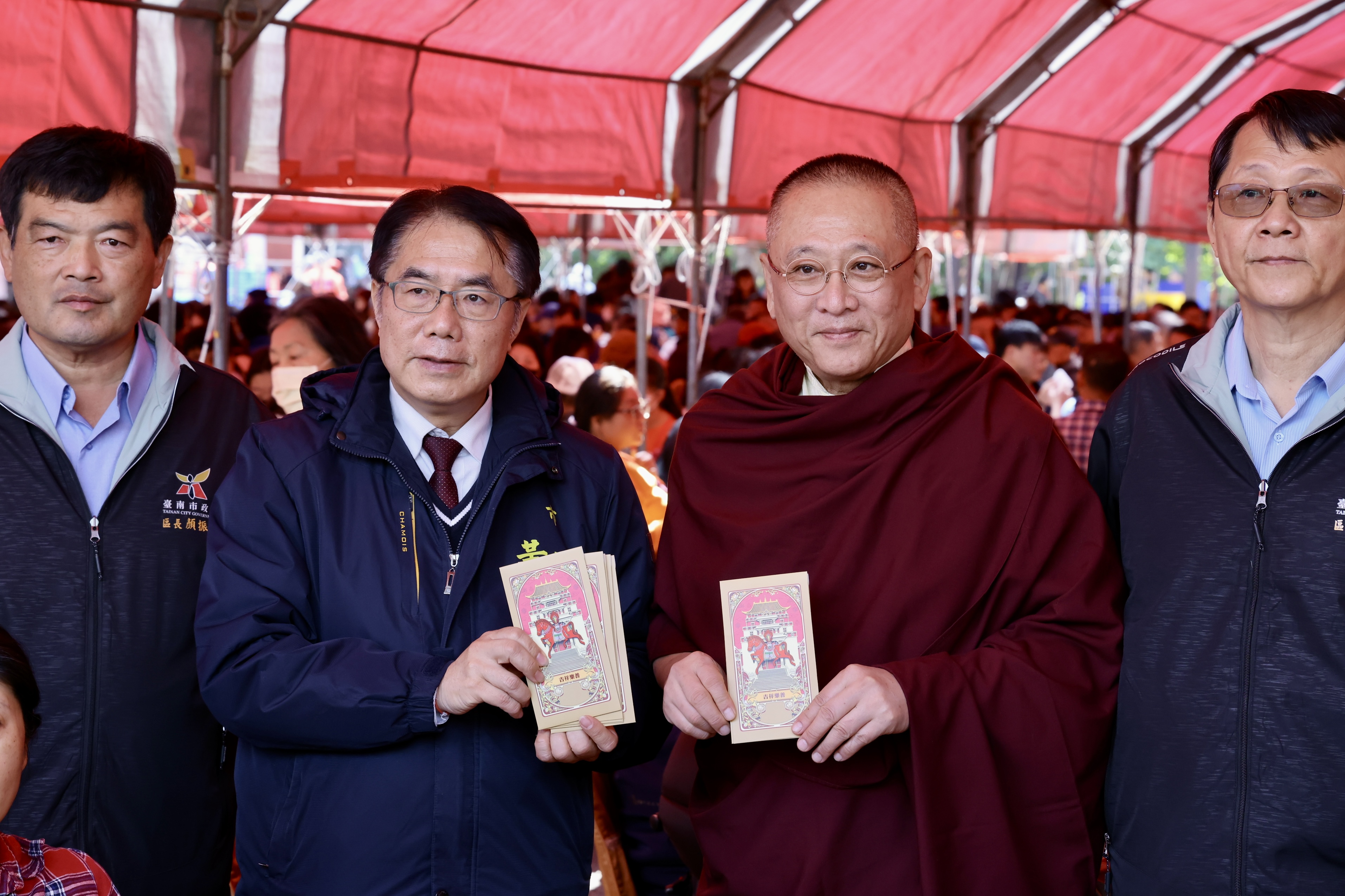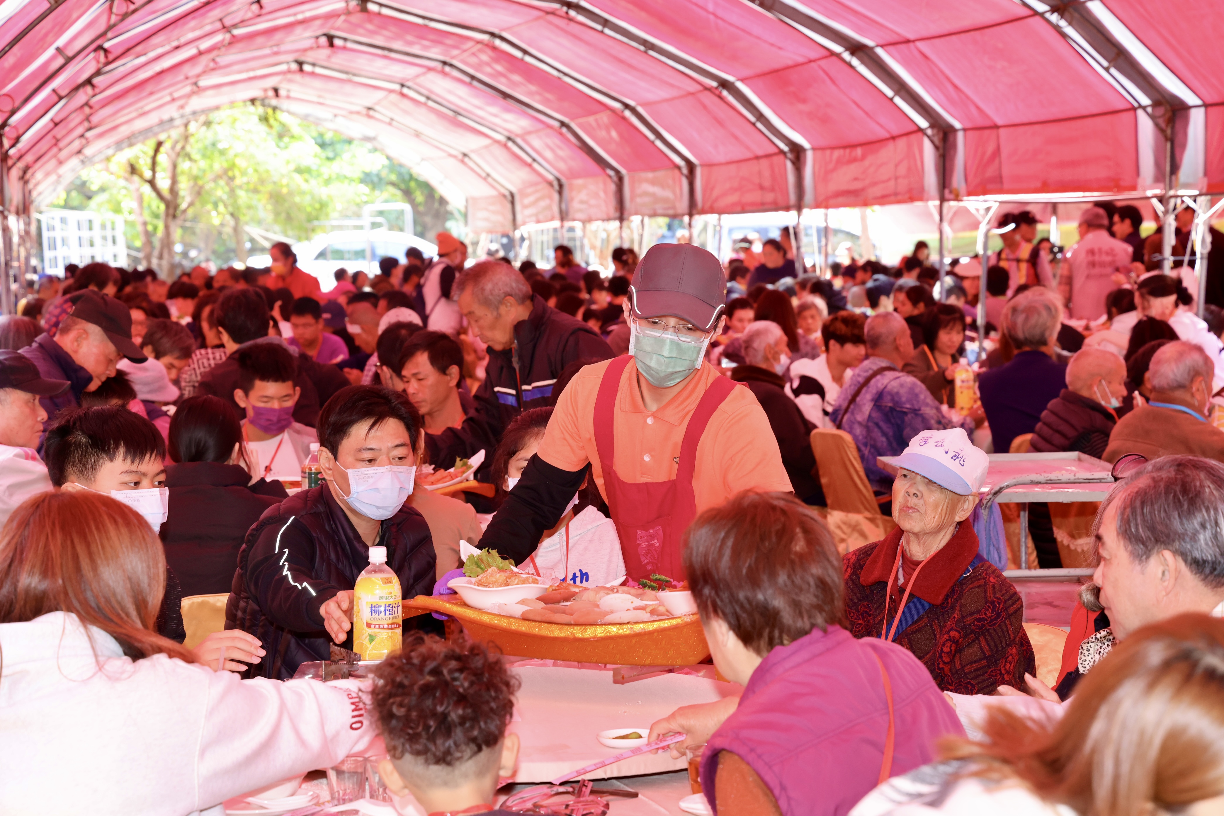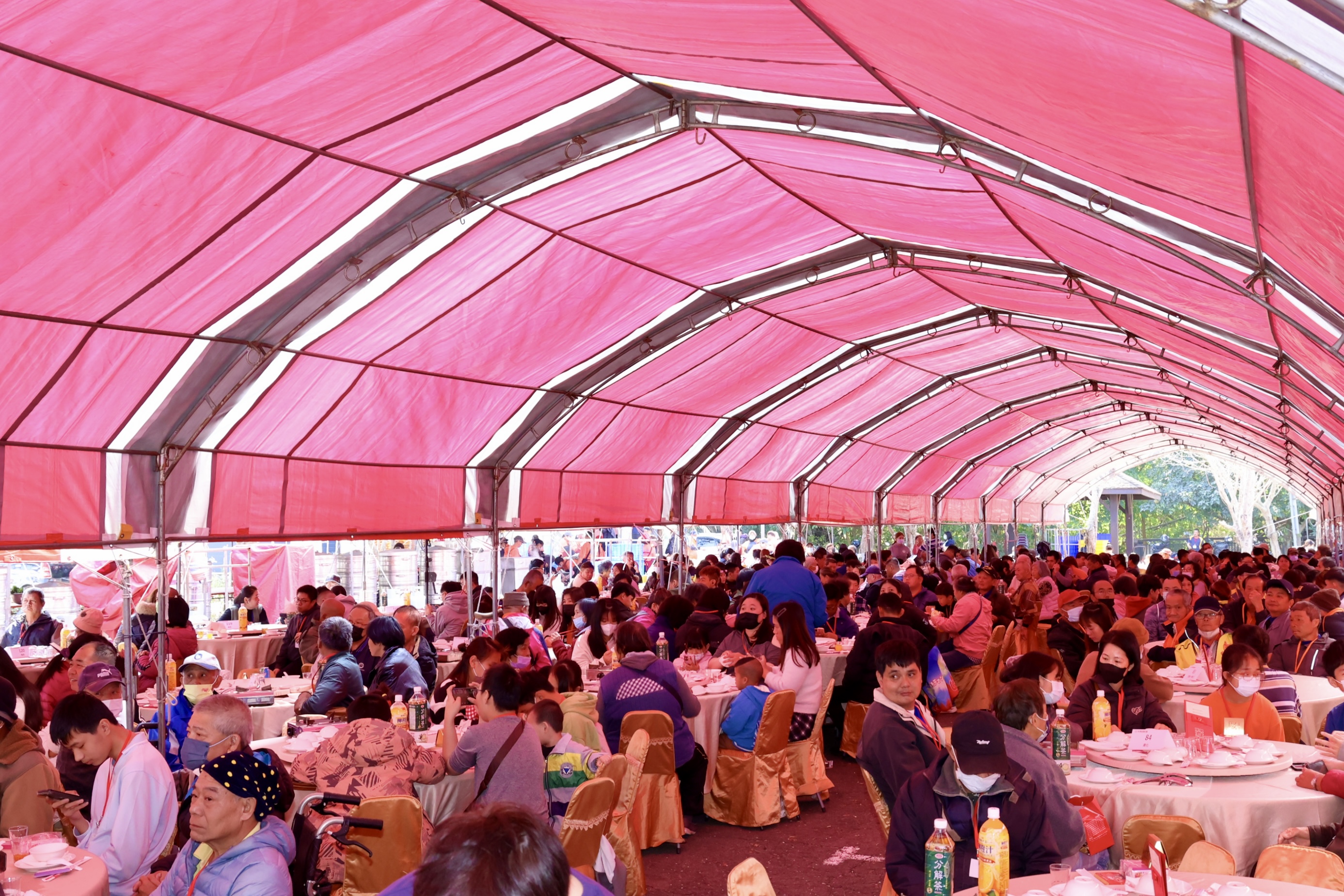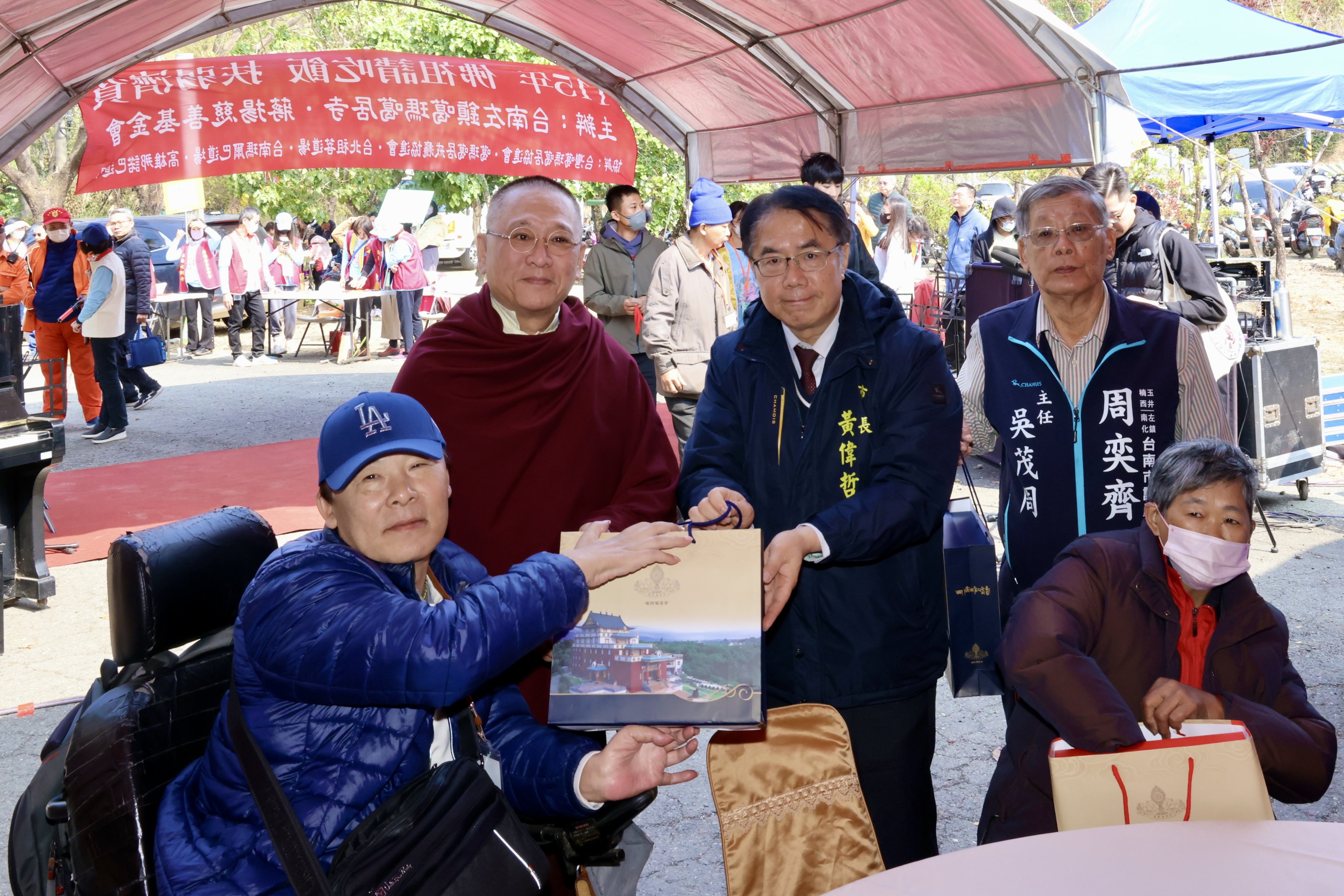 農曆春節即將來臨,台南左鎮區洋溢濃濃年味,今(8)日由台南左鎮噶瑪噶居寺、財團法人台南市私立噶瑪噶居蔣揚社會福利慈善事業基金會及社團法人台南市噶瑪噶居戒癮協進會攜手辦理「佛祖請吃飯 歲末送暖」慈善活動,邀請左鎮、玉井、楠西及南化等4區之低、中低收入戶、玉井社福中心列案弱勢家庭邊緣戶、弱勢身障福利團體及社區兒少關懷據點弱勢兒童,共計1,200位弱勢民眾齊聚圍爐,受邀前來的弱勢家戶除品嘗辦桌佳餚外,每人還可領取2,000元福田關懷金及1盒毛帽組合禮盒,讓民眾在春節前夕感受到社會的溫暖與支持。