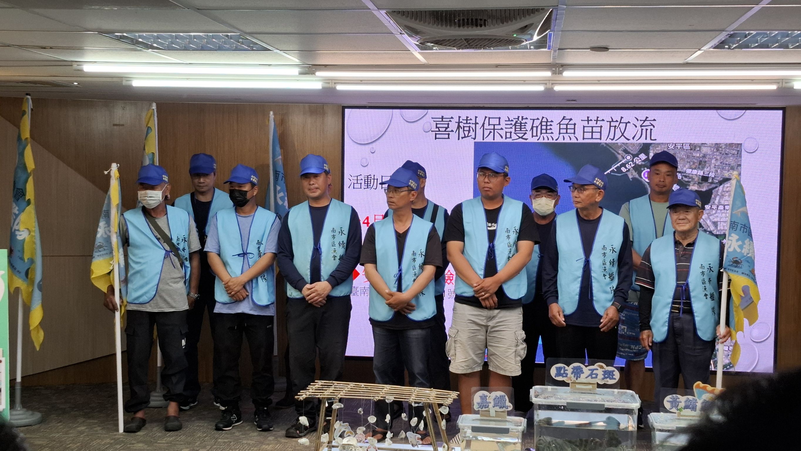 臺南市副秘書長殷世熙說明,近年來市府與漁會合作,共同推動多項漁業資源保育措施,包括宣導漁民遵守漁業管理規範、辦理魚苗放流活動、推動友善漁法作業及加強海域非法漁業取締等工作,持續改善沿近海生態環境;並支持南市區漁會組成永續巡護艦隊,建立臺南沿海海域守護機制。本次記者會除呈現台南海洋保育與漁業復育成果,希望17日南區外海魚苗放流活動,透過魚苗進行標識後再放流至海域,增加海域魚類資源量,並助於後續追蹤與研究魚群成長與洄游情形,作為未來漁業資源管理的重要參考,也讓更多民眾看見,公私協力投入海洋保育的實際行動與重要成果。
